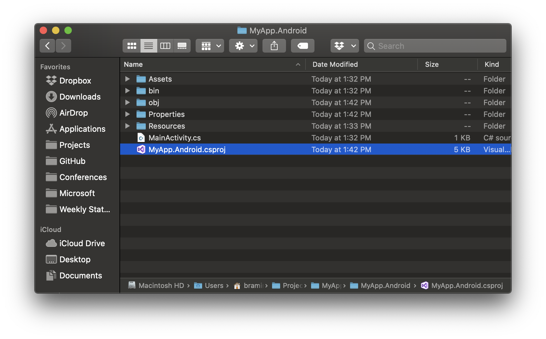 Reading project file /Users/bramin/Projects/MyApp/MyApp.Android/MyApp.Android.csproj.