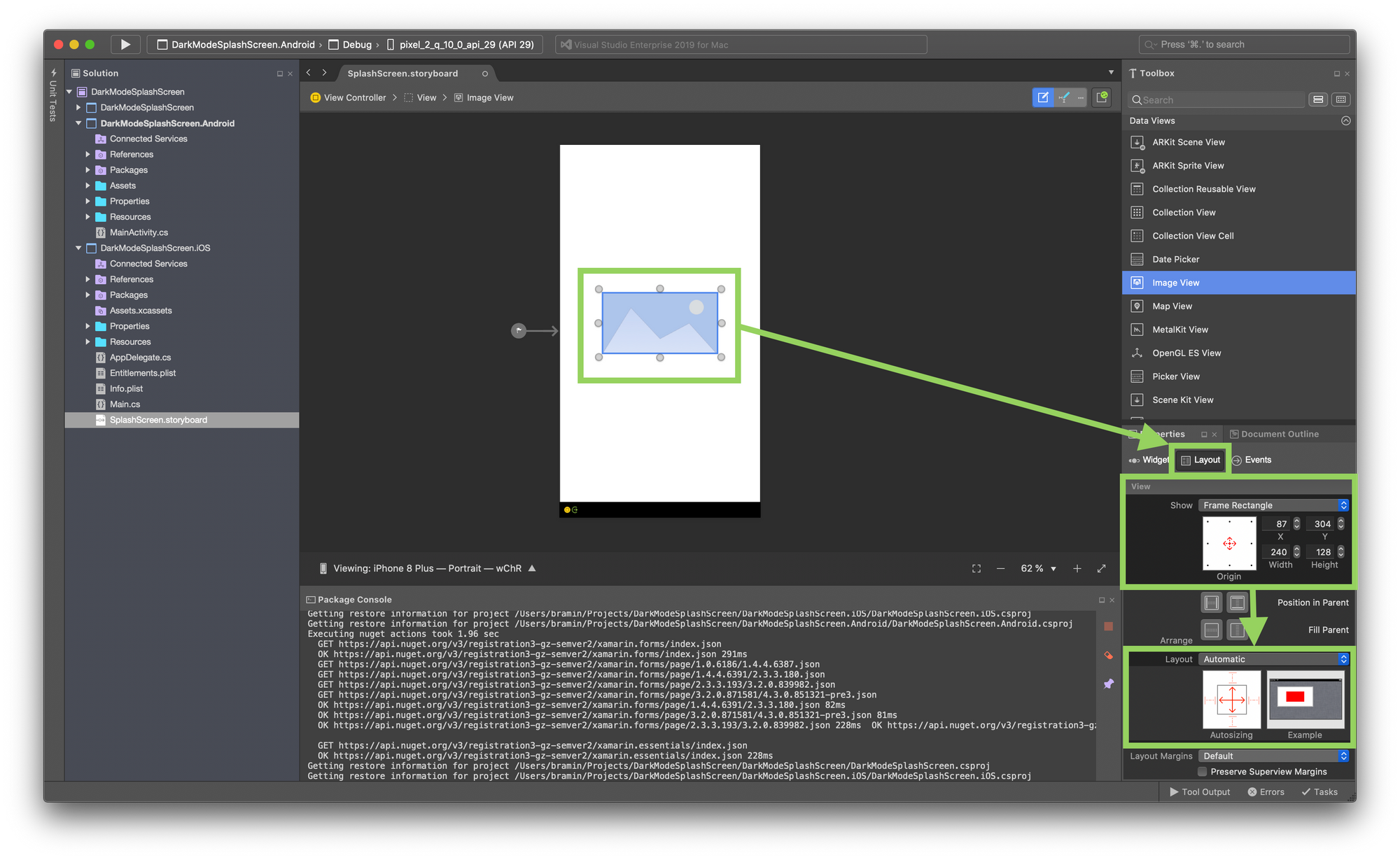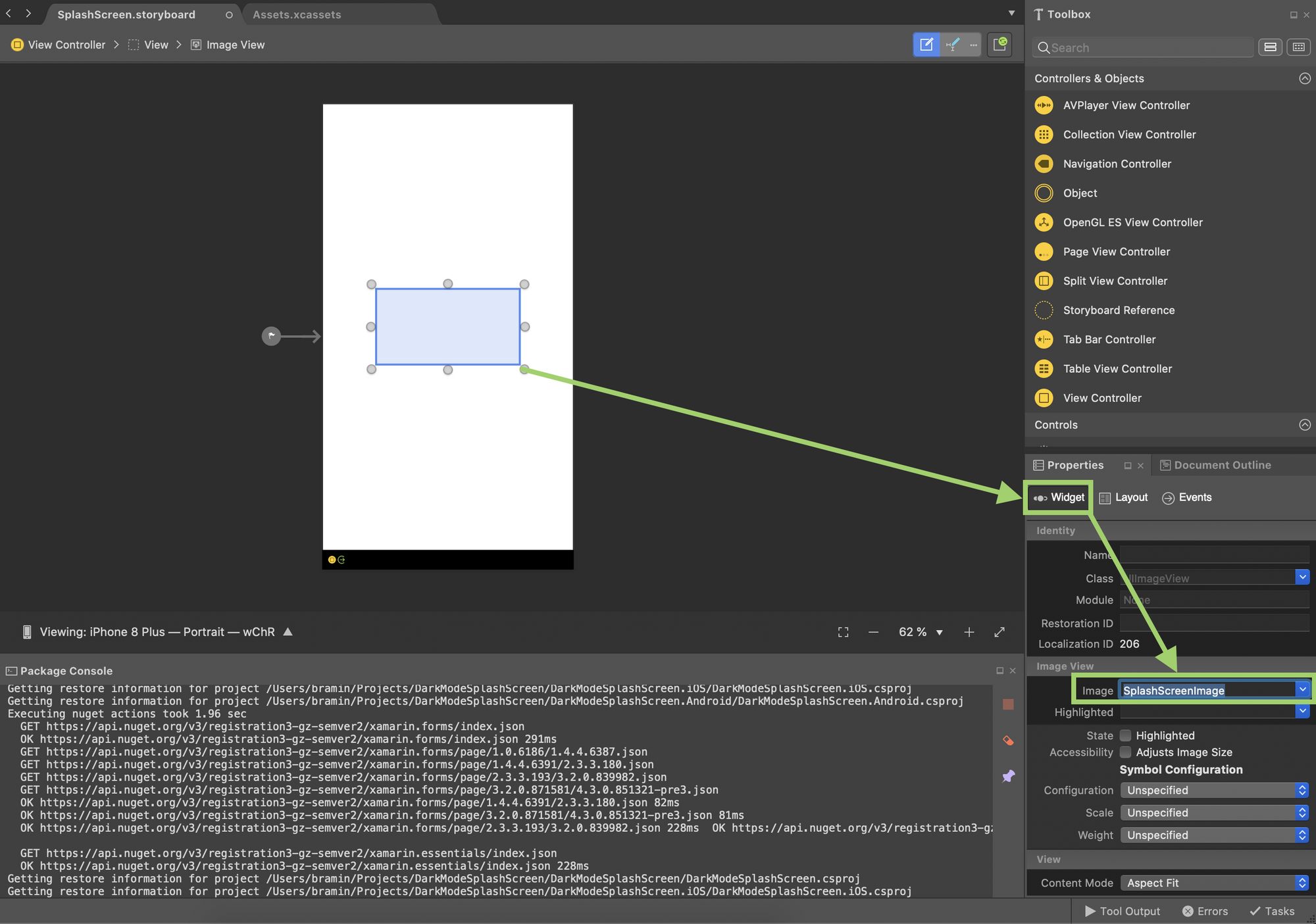 10. In the SplashScreen.storyboard Editor, click on the Image to select it