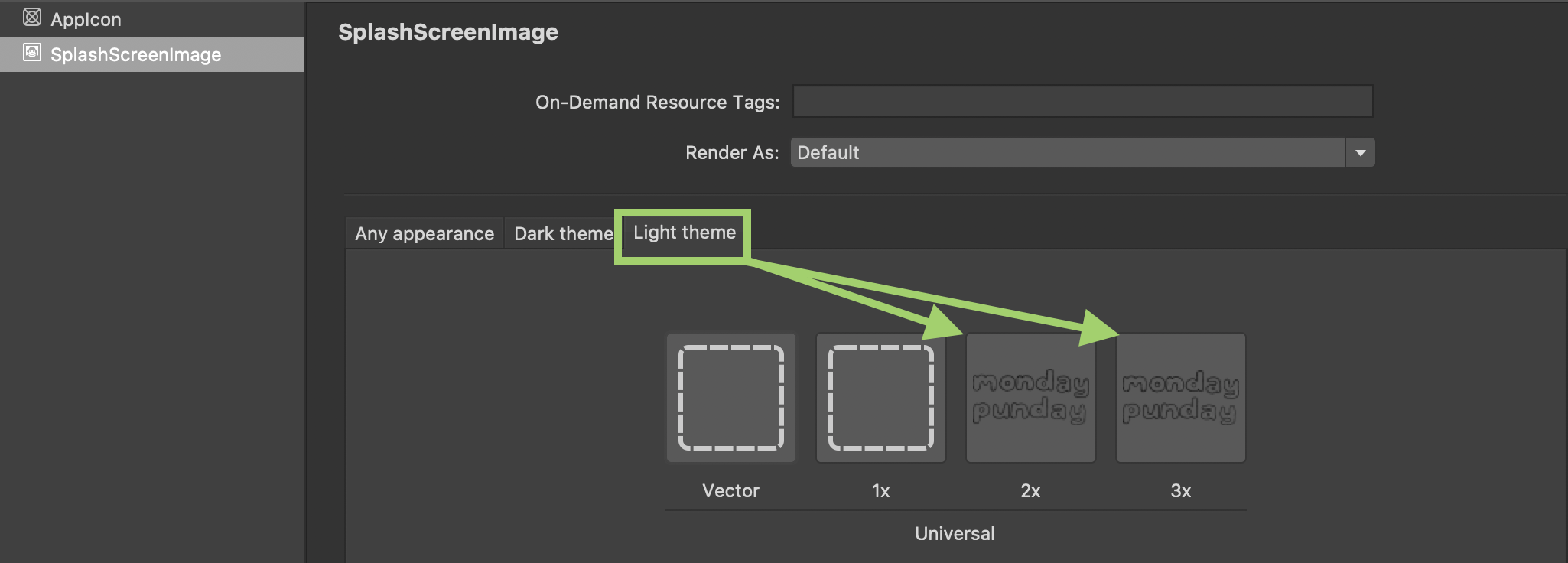 8. In the Light Theme window, add an image for 2x and 3x