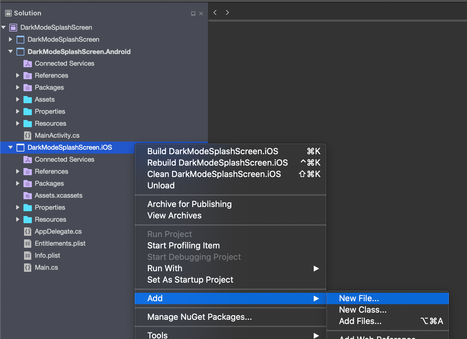- In the Visual Studio Solution Explorer, right-click on the Xamarin.iOS project