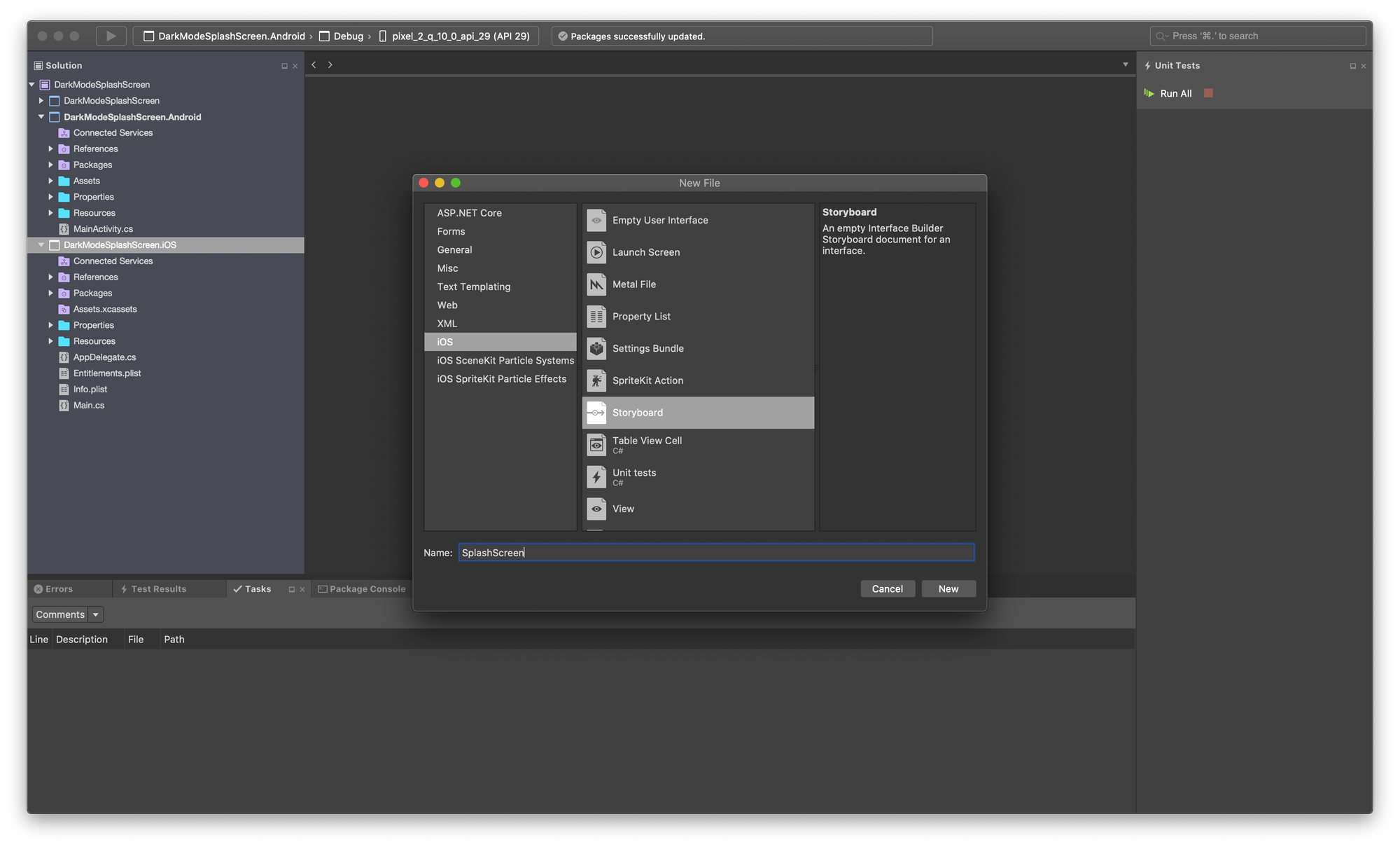 1. Create SplashScreen.storyboard