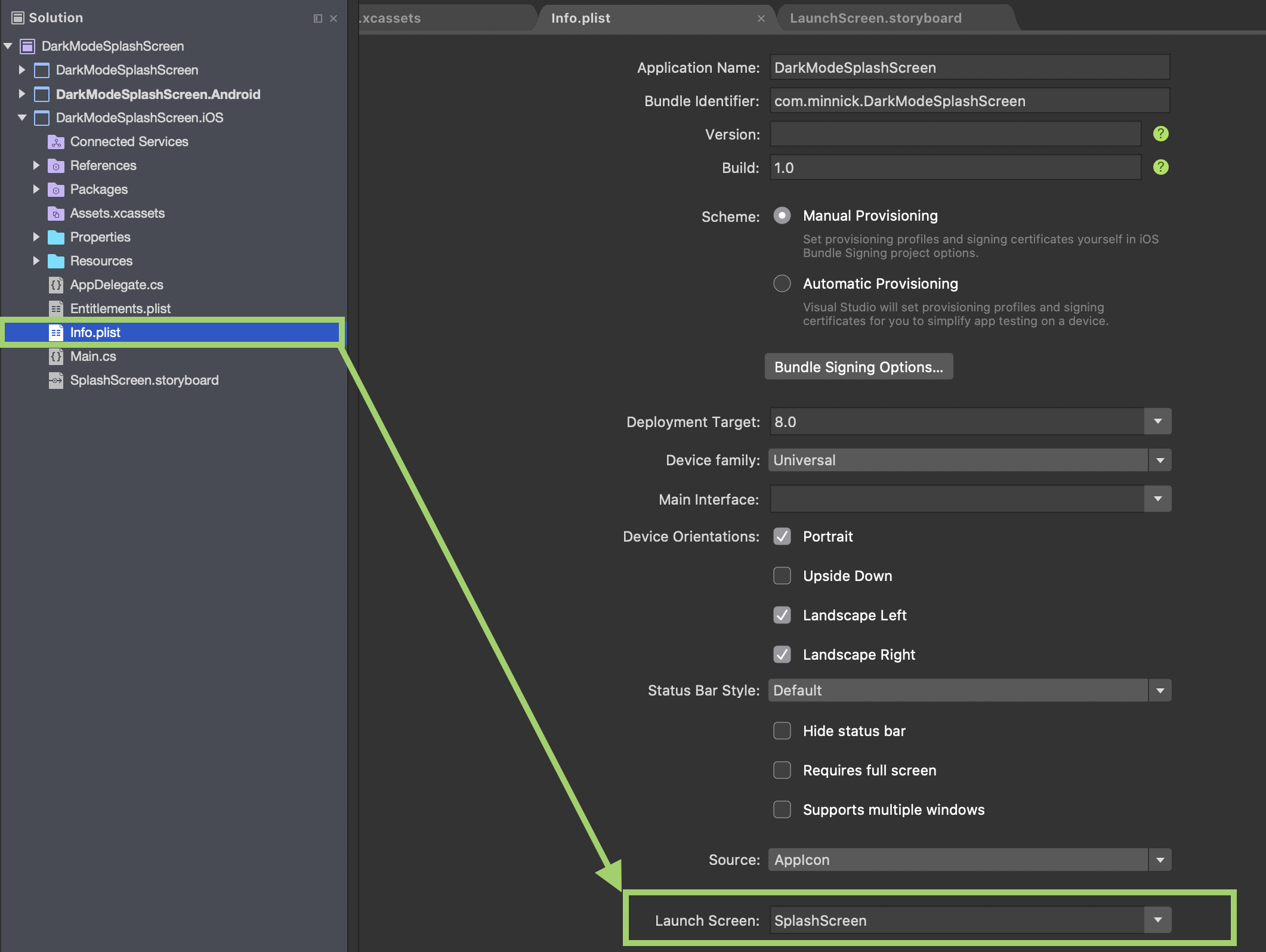 Now that SplashScreen.storyboard is completed, let's configure our Info.plist to ensure our iOS app uses it as the Launch Screen.