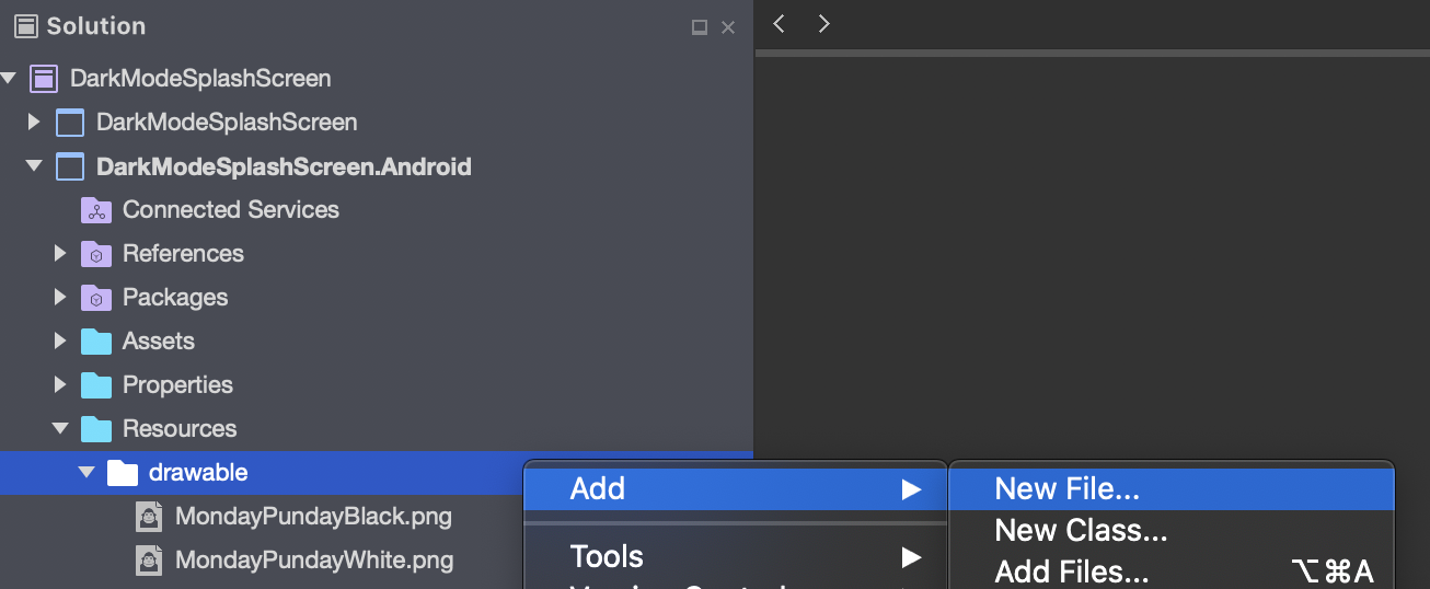 1. In the Visual Studio Solution Explorer, in the Xamarin.Android project, right-click Resources > drawable