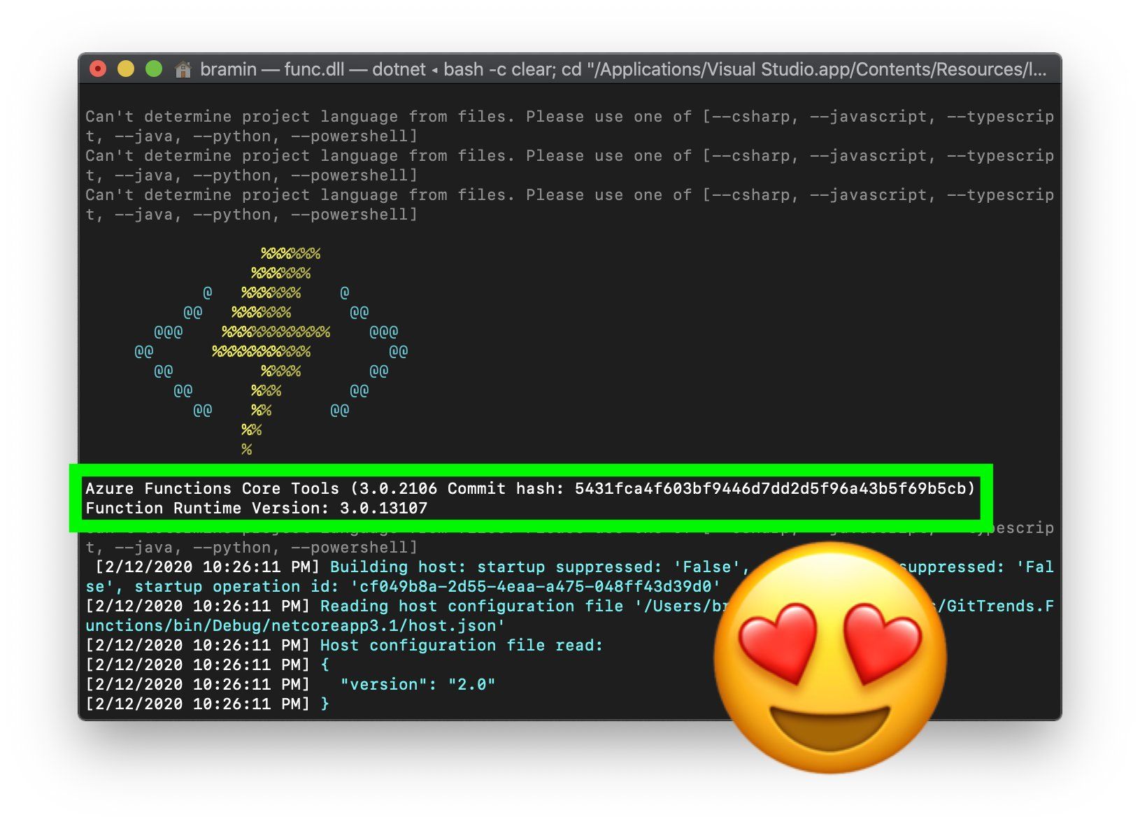 Azure Functions v3 was recently released on 09 December 2019 with support for .NET Core 3 and .NET Standard 2.1. Here's how to install the new runtime in Visual Studio and Visual Studio for Mac.