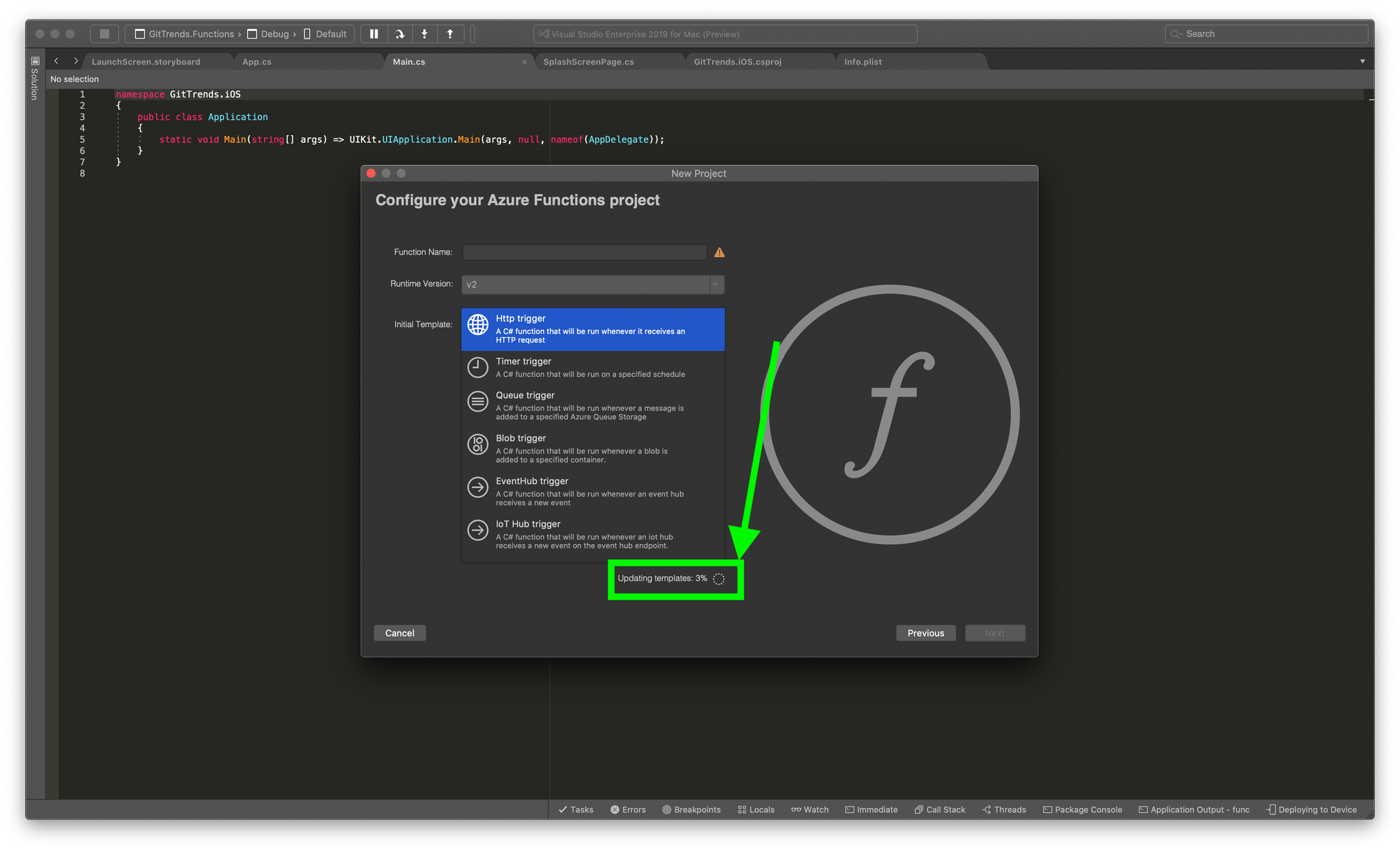 3b. (Visual Studio for Mac) Update Azure Functions Runtime